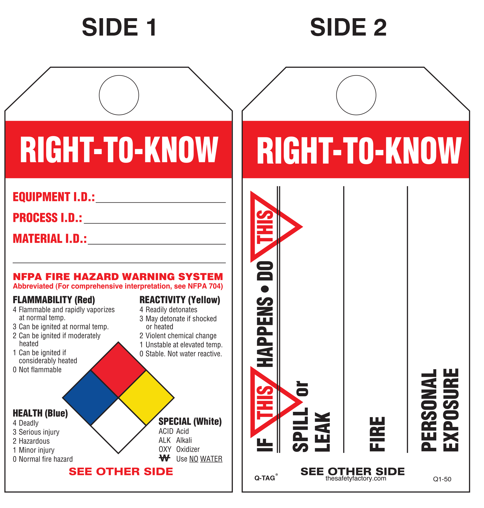 Right-To-Know  (Spills, Leaks, Fire, Exposure) Paper Tag Q1-50E