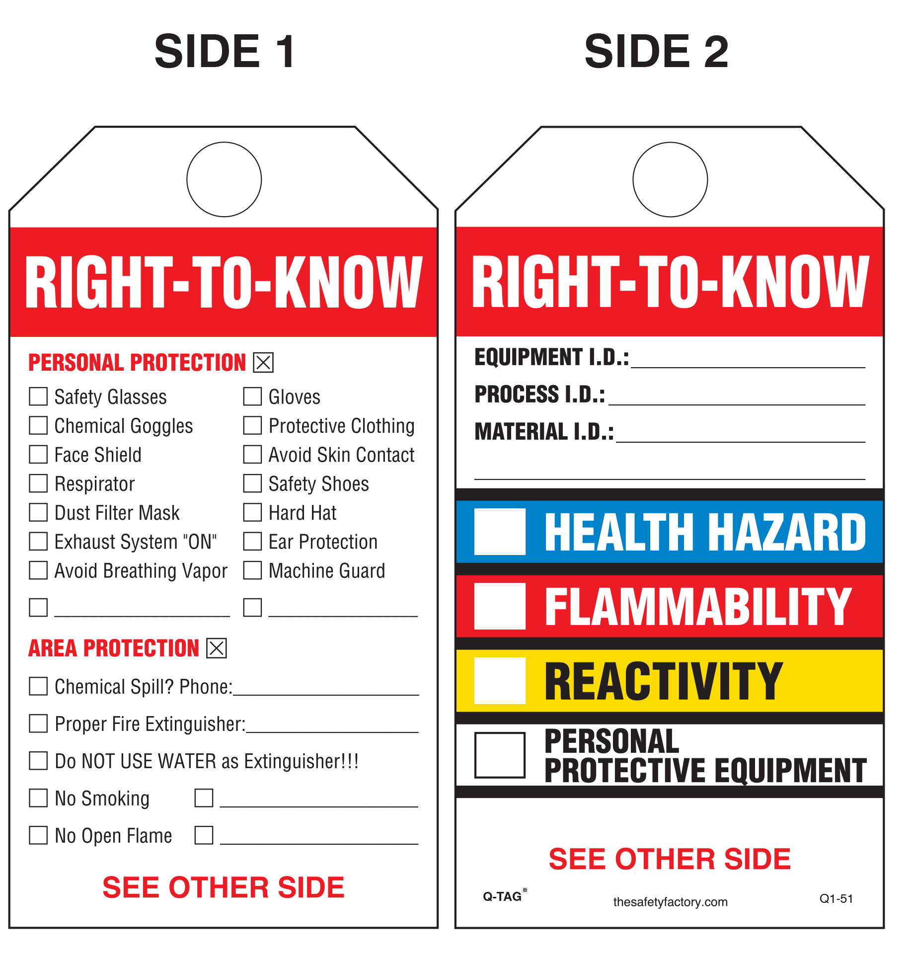 Right-To-Know (Personal Protection Checklist) Paper Tag Q1-48E