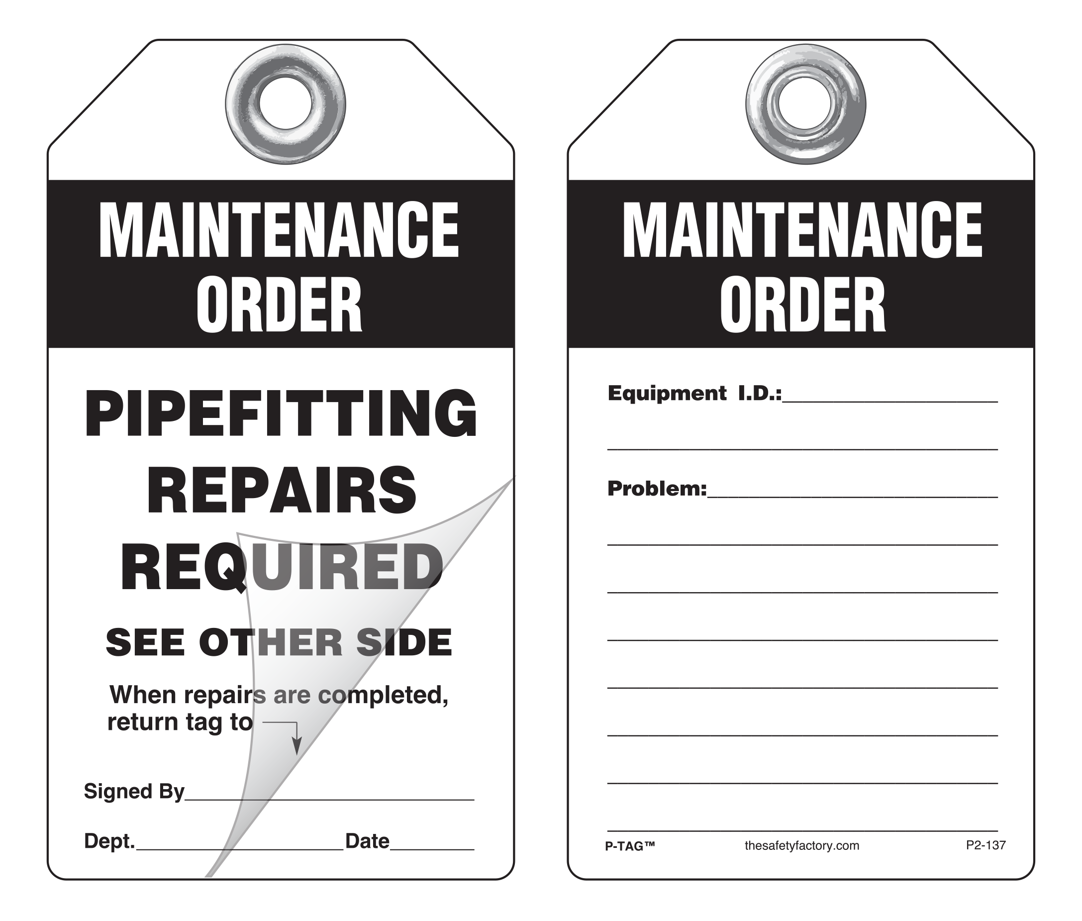 Maintenance Order, Pipefitting Repairs Required Self-Laminating Peel and Stick Safety Tag P2-137