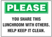 Legend:PLEASE, YOU SHARE THIS LUNCHROOM WITH OTHERS. HELP KEEP IT CLEAN.