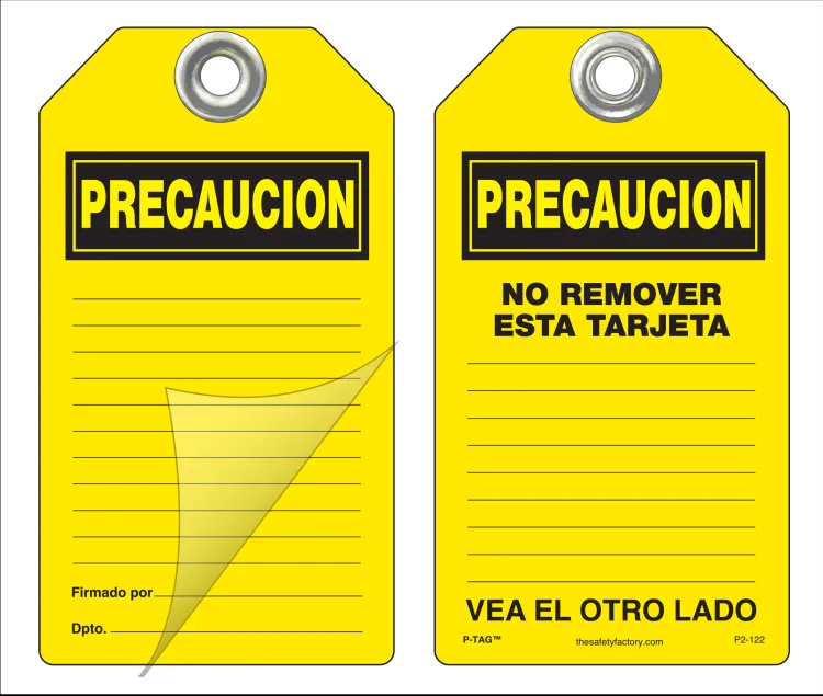 Precaucion Self-Laminating Peel and Stick Safety Tag (Spanish)