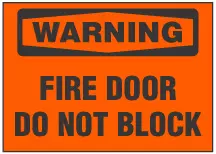 Warning Sign, Fire Door, Do Not Block