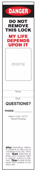Peel & Stick Padlock Label and Sleeve - Danger Do Not Remove This Lock