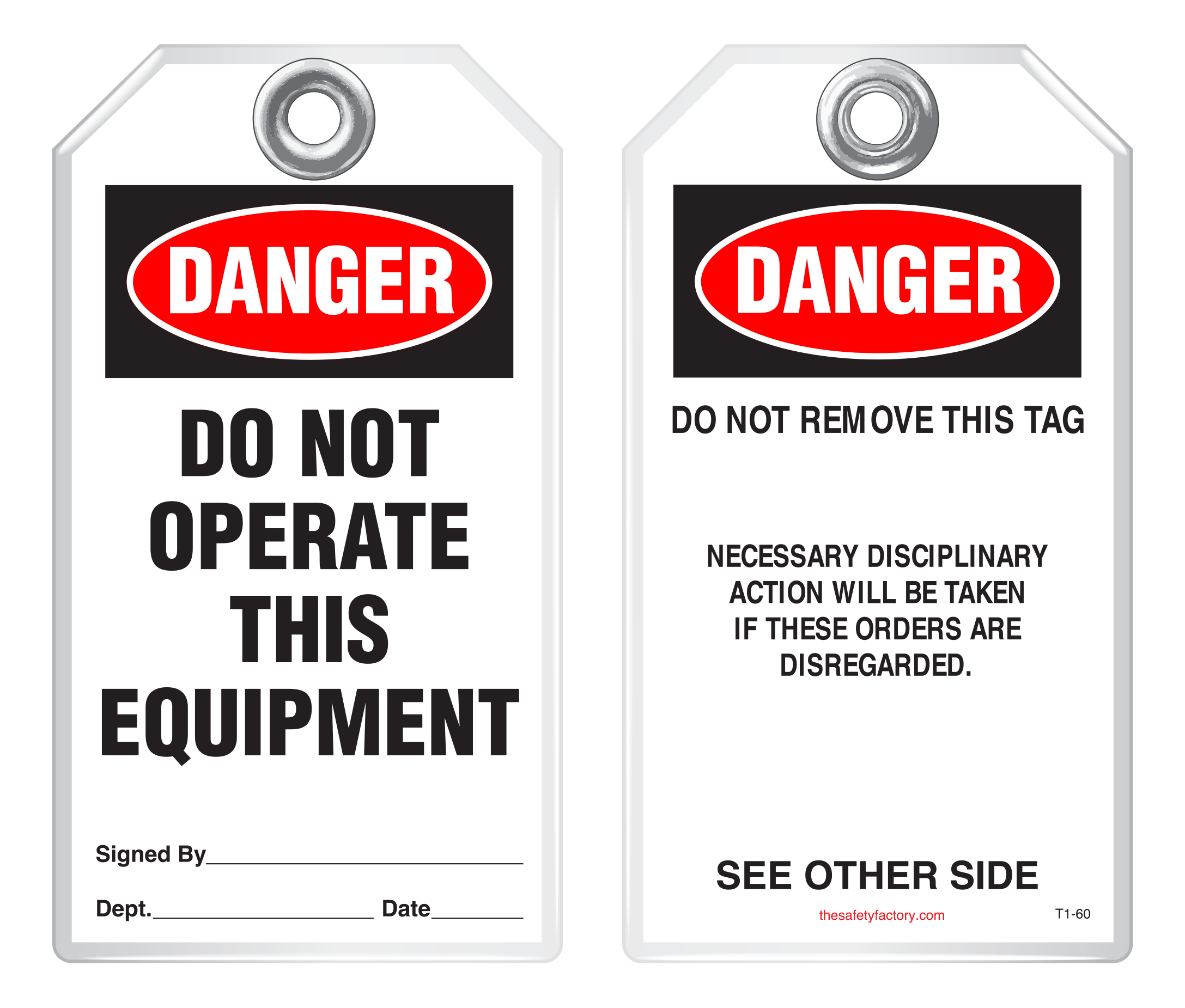 Lockout Safety Tag - Danger, Do Not Operate This Equipment (Disciplinary Action) T1-60