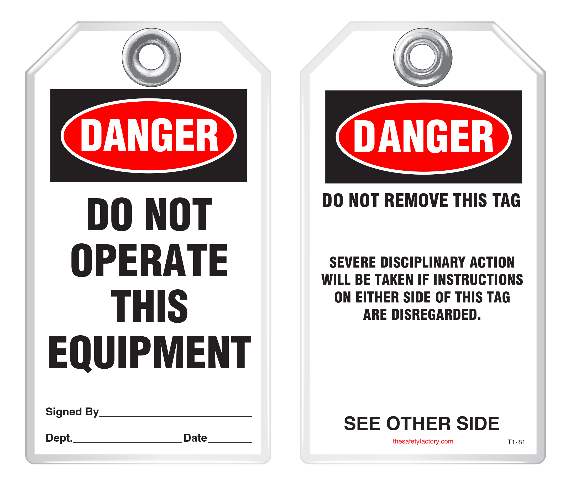 Lockout Safety Tag - Danger, Do Not Operate This Equipment T1-81