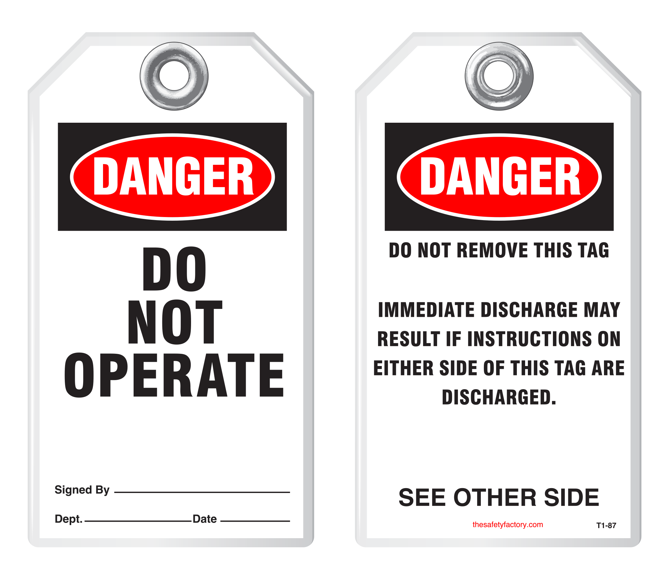 Lockout Safety Tag - Danger, Do Not Operate (Dismissal) T1-87