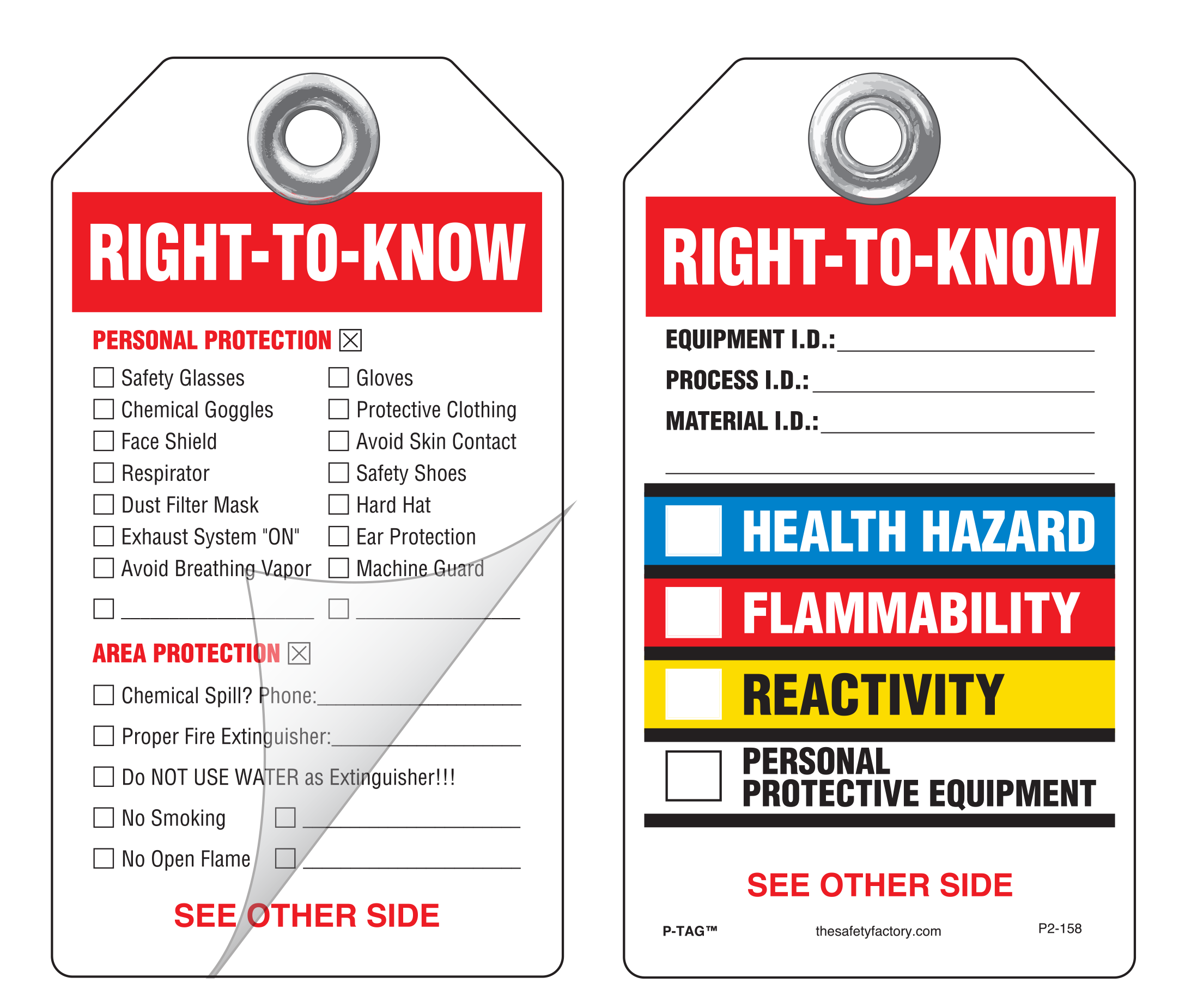 Right-To-Know (Health, Flammability, Reactivity) Self-Laminating Peel and Stick Safety Tag P2-158