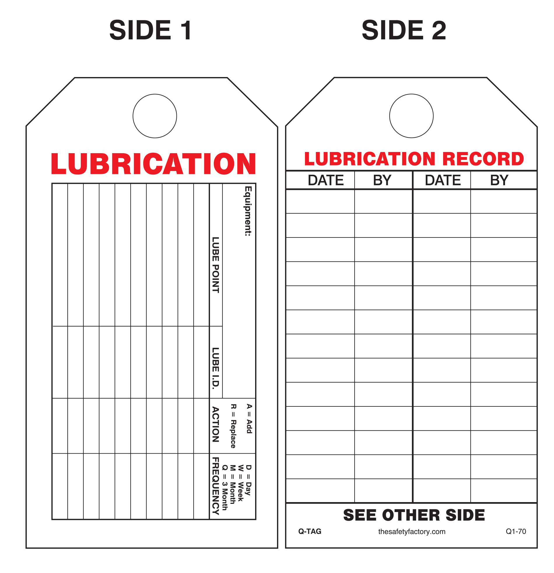 Lubrication Paper Tag Q1-70E