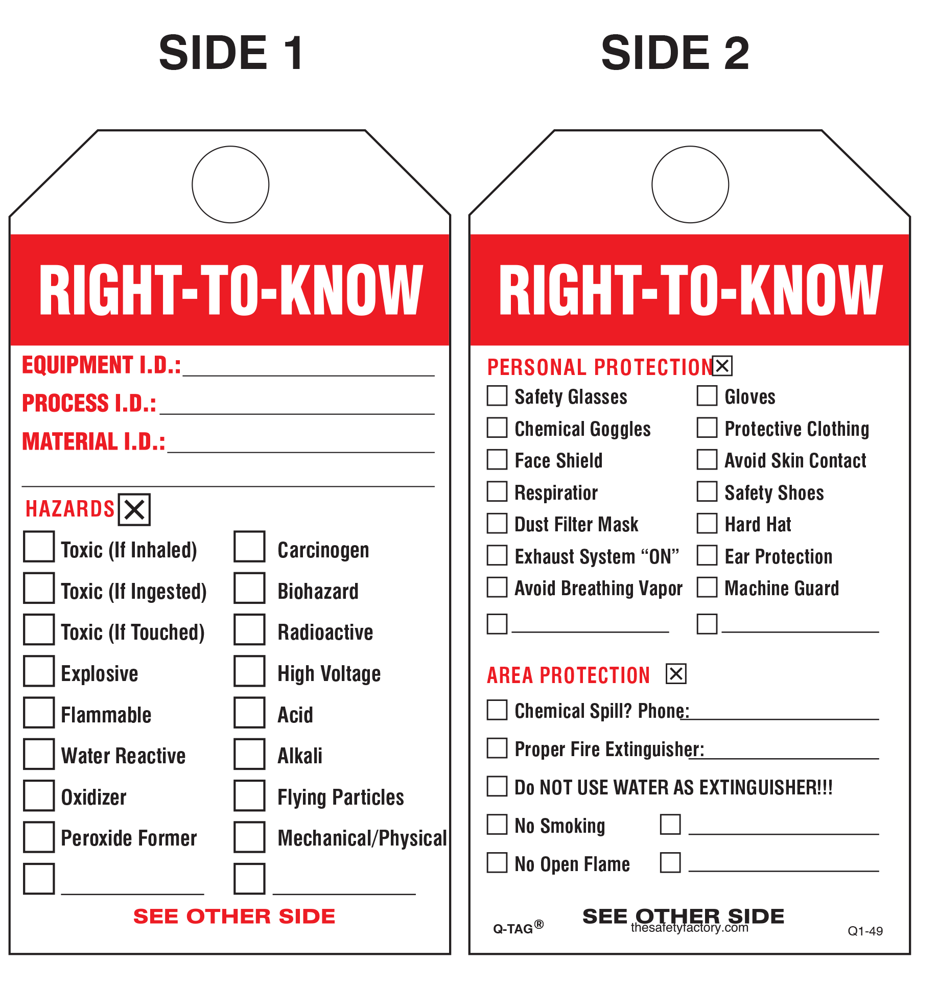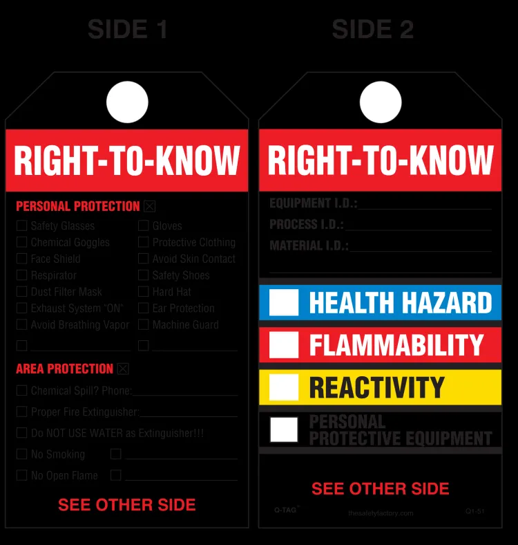 Right-To-Know (Health, Flammability And Reactivity) Paper Tag