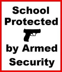 This sign announces that this School is Protected By Armed Security.