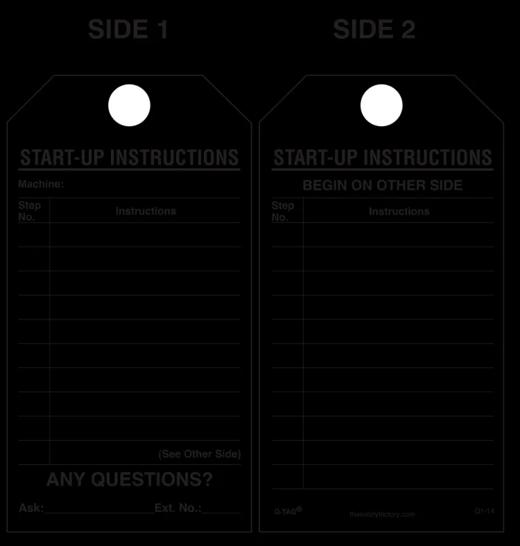 Start-Up Instructions Paper Tag