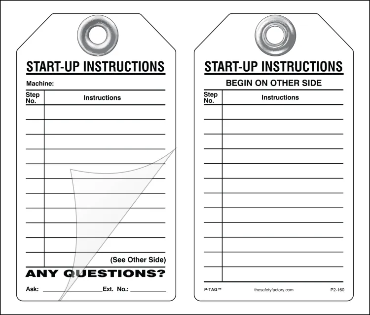 Start Up Instructions Self-Laminating Peel and Stick Safety Tag