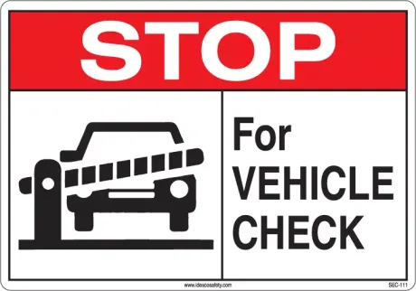 This security sign indicates that you must stop your car or truck for a security check before passing.