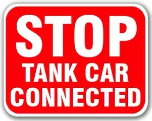 The Stop Tank Connected sign is required when the train has a railroad car with a storage vessel hooked up.