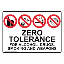 Zero Tolerance For Alcohol, Drugs, Smoking and Weapons