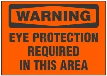 Warning Sign, Eye Protection Required In This Area (Orange Background)