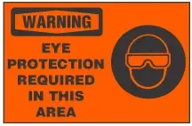 Legend:WARNING, EYE PROTECTION REQUIRED IN THIS AREA (With Symbol, Orange Background)