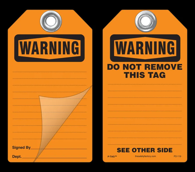 Warning Self-Laminating Peel and Stick Safety Tag